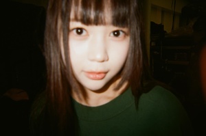 L'image capture un portrait rapproché et spontané de Ye-on, membre de Hearts2Hearts, durant sa période de pré-début. Elle regarde directement la caméra avec une expression douce et juvénile, ses yeux grands ouverts et innocents, et ses lèvres légèrement entrouvertes. Sa frange épaisse signature encadre son front, complétant ses longs cheveux sombres qui tombent naturellement autour de son visage, mettant en valeur ses joues rondes et son visage plein. Ye-on porte un simple haut vert foncé à col rond, ce qui ajoute à la sensation naturelle et sans prétention de la photo. L'arrière-plan est faiblement éclairé et flou, suggérant un cadre intérieur intime, possiblement une pièce décontractée. L'atmosphère générale est chaleureuse, naturelle et douce, reflétant parfaitement le charme d'un moment de pré-début.