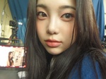 這張特寫照片捕捉了 Hearts2Hearts 的 Ian,似乎是在拍攝期間的 candid、幕後時刻。她正直視鏡頭,表情柔和自然,嘴唇微張。她烏黑濃密的長髮優雅地披散在肩上,襯托著她的臉龐。她身穿一件舒適的藍色針織上衣,右肩可見。背景虛化,專業相機三腳架和藍色窗簾暗示著攝影棚或片場環境。左下角的顯示器顯示著另一個場景或人物,進一步強調了製作環境,符合「預出道」的語境。整體氛圍溫暖而親密,讓人得以窺見她正式出道前的準備工作。