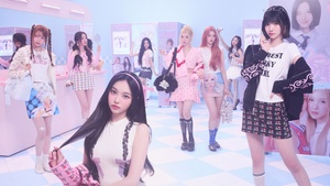 Hearts2Hearts 成員們在充滿活力的 Y2K 風格工作室拍攝中被捕捉,展現他們獨特的「STYLE」,背景是俏皮的粉彩色調。前景中的 A-na 迷人地望向鏡頭,她留著一頭黑色長髮,戴著粉紅色髮帶,身穿帶有精緻紫色蝴蝶結的白色無袖上衣。最左邊的 Carmen 展現出歡樂的氛圍,她標誌性的雙辮子、碎花開襟衫和動漫印花迷你裙,手裡拿著一個淺藍色手提包。自信地站在最右邊的是 Jiwoo,她留著標誌性的鮑伯頭,一件「BEST LUCKY GIRL」T 恤,外面套著帶有粉紅色漩渦圖案的黑色夾克,以及一條「I ❤️ ME」迷你裙。中間的 Juun 以她金色的頭髮和別緻的粉紅色圓點印花短版上衣和同款百褶裙脫穎而出,肩上挎著一個毛茸茸的黑色包。她旁邊的 Yuha 則散發出溫暖的氣息,她有著紅褐色的頭髮,一件白色蕾絲上衣,以及一件 Elsa 印花迷你裙,手裡拿著一個印花手提包。整個場景充滿活力和時尚感,背景是粉紅色牆壁、淺藍色棋盤格地板和圖形海報,營造出夢幻而大膽的美學。